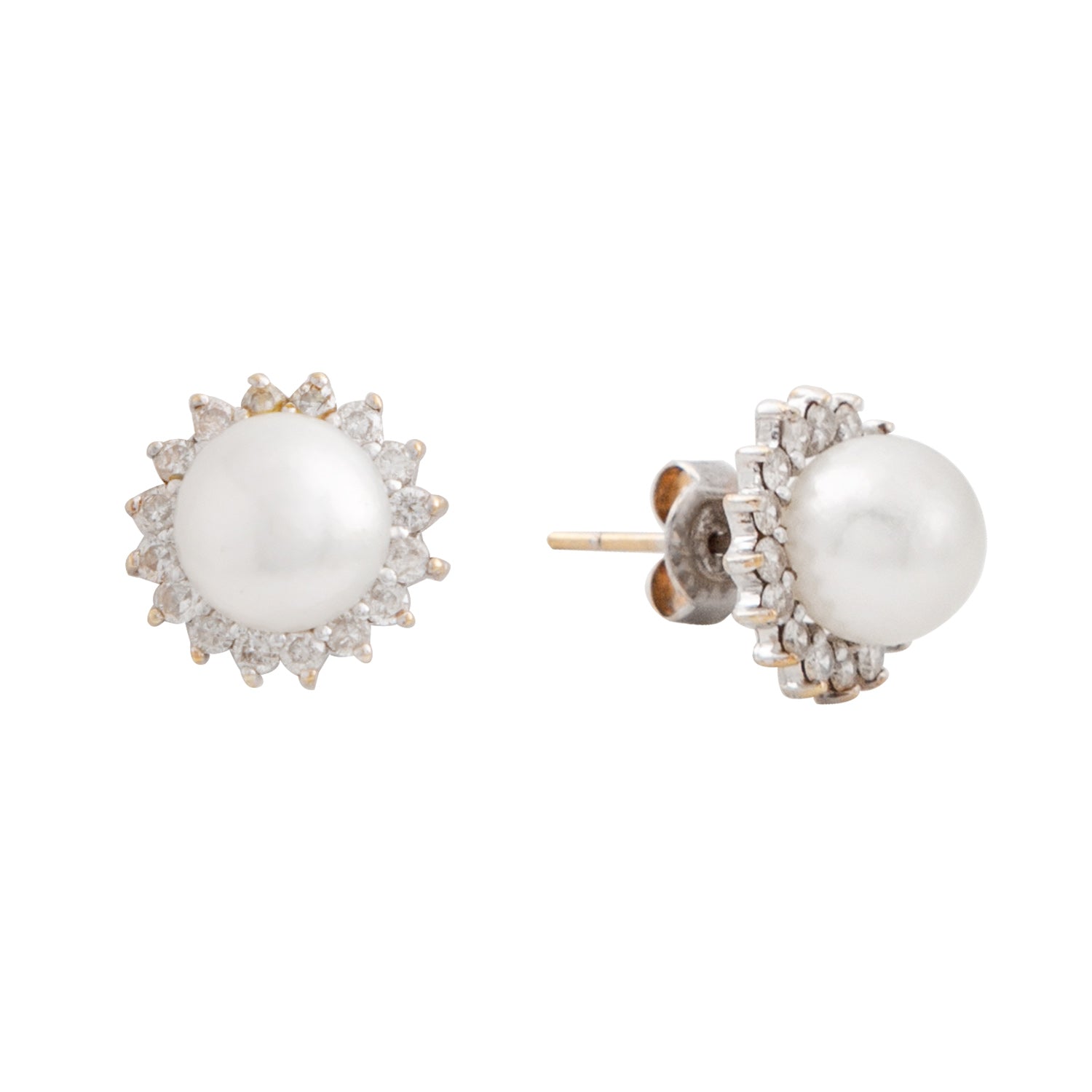 Piedras: Perla sintetica, 32 diamantes de 0.02 CT.