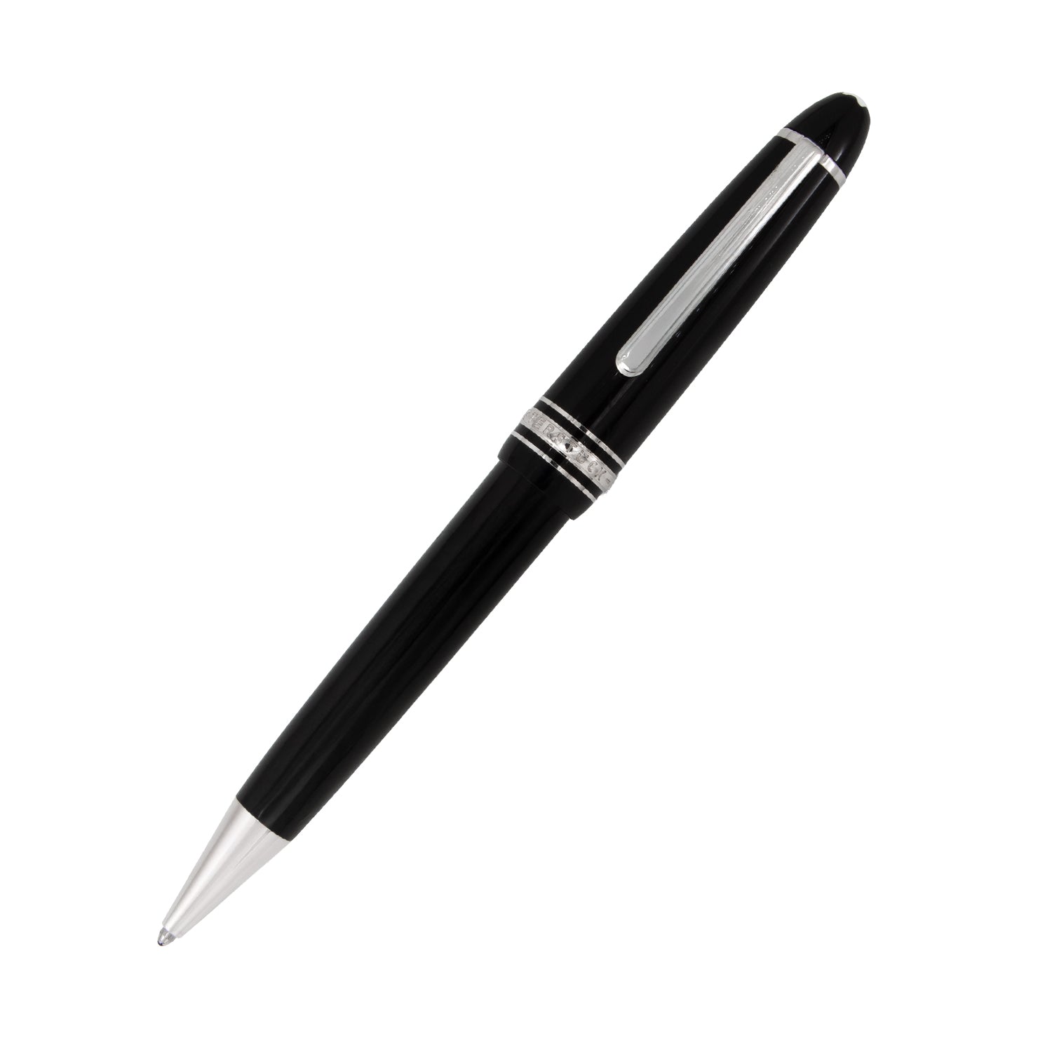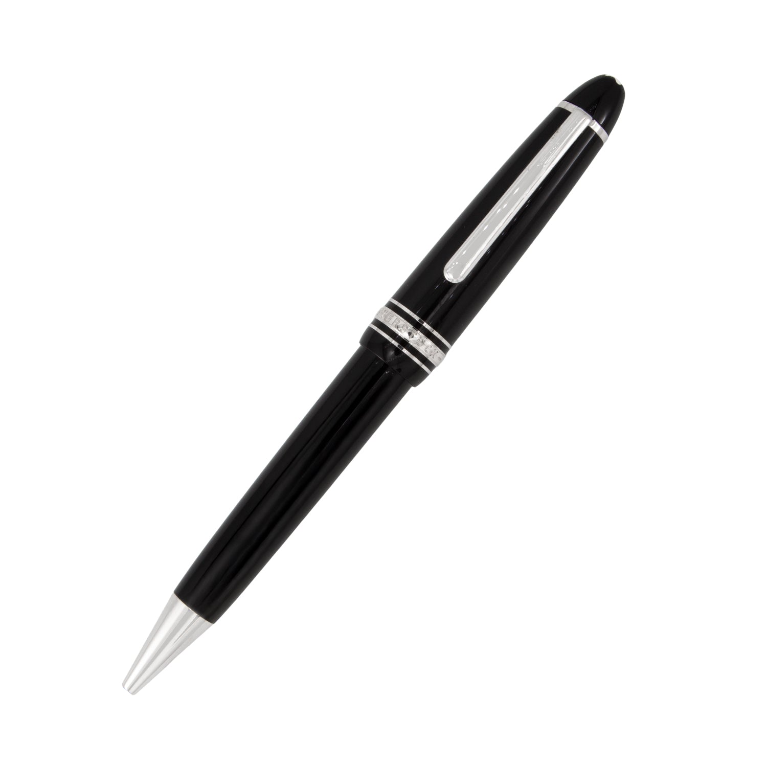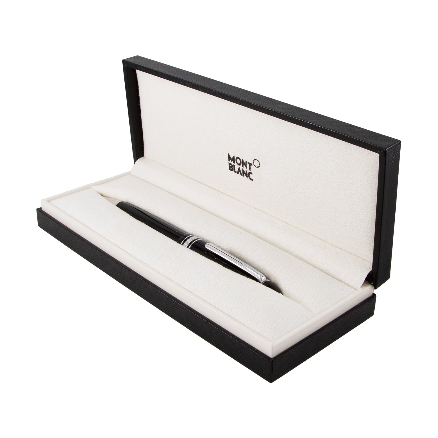 Detalles: Clip plateado, anillo central grabado con el logotipo Montblanc y capuchón con emblema de la marca incrustado.