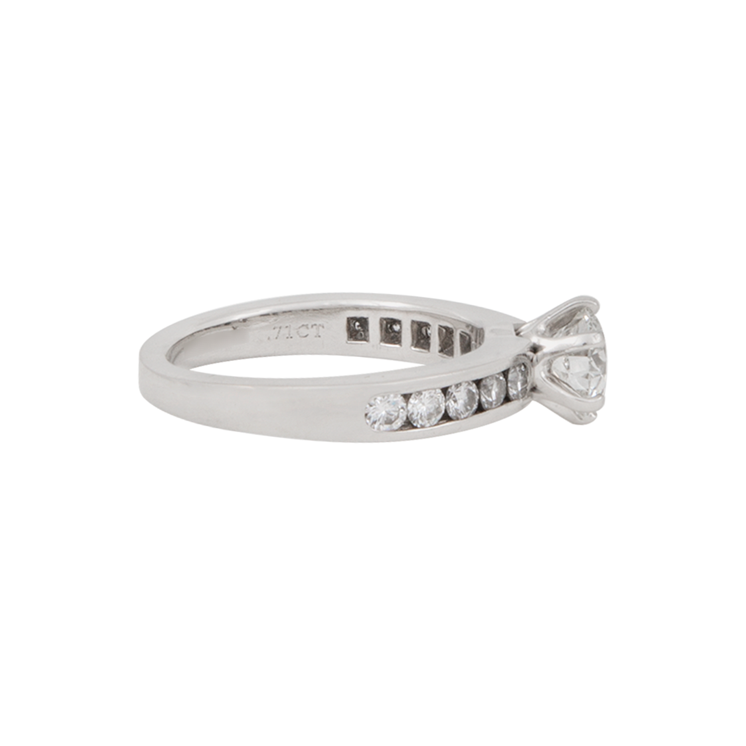 Piedras: Diamante central de 0.71 CT, color J, claridad VVS1.